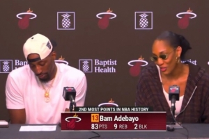 赛后,女友阿贾·威尔逊和阿德巴约一起接受了记者采访,她说道:“上帝对他特别眷顾,上帝不会对巴姆开玩笑。”