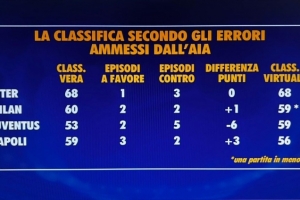 意甲无误判情况下积分榜前四名: