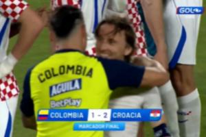 比赛结束后,J罗和莫德里奇交换球衣并聊了许久。两人此前曾在皇马共事。