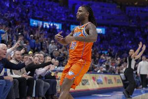 雷霆球员卡森·华莱士出场35分3秒,16投11中(三分5中4),罚球2中1,拿到27分8篮板6助攻1抢断,正负值+5。