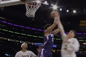 GIF-拉拉维亚篮板犯规 湖人挑战再次成功